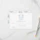 Delicate romantic light blue floral wedding response RSVP cards featuring bride and groom monogram on vintage crest decrated with blue and white flower bloom.