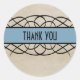 Elegante y elegante Pegatinas Flourish Border Gracias con un aspecto vintage y un lujoso borde de rayas azules y giratorio. Este elegante diseño es la elección perfecta para un boda de estilo vintage inspirado en la moda deco. Fácil de personalizar, simplemente agregue el texto personalizado de su elección en el campo de texto proporcionado. Haga clic en "Personalizar" para encontrar más opciones de personalización.