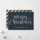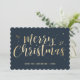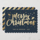 Hermosa tarjeta azul y dorada Feliz Navidad. Personaliza fácilmente esta tarjeta de vacaciones moderna con tu texto.