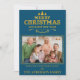 Blue Gold Merry Christmas Happy New Year Photo Holiday Card . El diseño tiene espacio para añadir una de tus fotos favoritas con MERRY NAVIDAD Y AÑO NUEVO FELIZ escrito en estilo tipográfico de bonito y espacio para añadir Nombre de Familia en un fondo azul y dorado . Envíe estas elegantes y sencillas tarjetas de festividad fotográfica a familiares y amigos. Estas tarjetas pueden ser totalmente personalizadas. Para cualquier personalización adicional , no dude en ponerse en contacto conmigo en mypaperlove2021@gmail.com