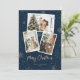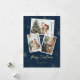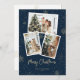 Foto personalizado azul y dorada de la tarjeta Feliz Navidad con un collage de fotos con copos de nieve y caída de nieve. Personalice fácilmente esta moderna y nevada tarjeta de vacaciones con sus fotos y texto.
