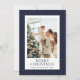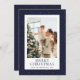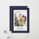 Una carta minimalista pero elegante azul Feliz Navidad con una noche dorada estrellada en un fondo azul oscuro. Personalice fácilmente esta tarjeta de vacaciones con su foto y texto.