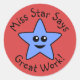 Una estrella personalizado feliz azul. El texto dice "¡Miss Star dice gran trabajo!" y se puede cambiar por un nombre/mensaje personalizado. Ideal para profesores como recompensa para estudiantes.