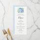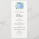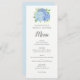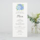 Estas tarjetas del menú de la ducha de novia cuentan con flores de hidraangea azul. Puede cambiar los estilos y colores del texto haciendo clic en el botón "Personalizar". Productos a juego disponibles.