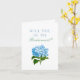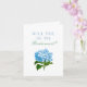 Una tarjeta de presentación para tu fiesta nupcial, esta tarjeta blanca suave cuenta con un antiguo ilustracion de hidrangea azul con texto clásico y fácil de personalizar que te permite elegir cómo "proponer" a los miembros de tu fiesta nupcial.