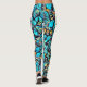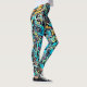 Estas leggings presentan un patrón gráfico -estilo de arte urbano- basado en una foto de hortensias. La decoración es de tonos turquesa, negro, amarillo, rosa y otros tonos. Cada pierna no tiene el patrón exacto pero tiene los mismos tonos y elementos de diseño similares.