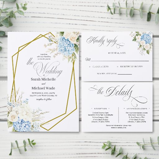 Blue Hydrangea Geometric Wedding InvitationDiseñado por Phyllis Waugh