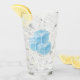 Drinking glass with the image of blue ice cubes on both sides of the glass