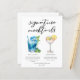 This cute signature mocktails menu sheet features 2 drink drawings and their ingredients for your wedding bar or pool party. A Blue Lagoon and non-alcoholic Lemon Drop for a trendy bar menu with your customized event text.