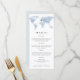 This dinner menu features an editable location, blue watercolor map and an elegant font combination. It's perfect for any travel, adventure, or destination themed event.