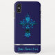 Magnífica cruz medieval en tonos azul y plateado con nombre personalizado, sobre fondo azul denim. El color de fuente, el estilo de fuente y el tamaño de fuente son personalizables.