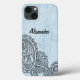 Proteja su teléfono con este elegante Funda Mehndi Motif Funda-Mate Barely There Samsung Galaxy Note 4 con un intrincado diseño indio de henna en un fondo de apariencia afligida azul. Añade texto personalizado, como tu nombre o monograma, a este diseño étnico para darle un toque personal.