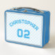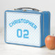 Crea tu propia tipografía / fuente / guión azul oscuro, agradable, elegante, personalizada, genial, con estilo, número jersey del nombre del jugador monogramado, moda moderna con estilo, cheques a cuadros de verificación de color azul claro y blanco vintage, fondo de diseño adorable, placa de lata de inocuidad de alimentos duradera, material interior seguro para el contacto con alimentos, niños de estilo clásico caja metalizado de almuerzo escolar con mangos de plástico negro contraíble. Simplemente teclee tu nombre / nombre de niño / nombre del jugador y número de camiseta del jugador, al personalizar. Los hombres son un gran regalo para su cumpleaños, navidades, vacaciones, graduación, de vuelta a la escuela, y más para sus hijos, nietos, hijos, hermanos, sobrinos, primos, nietos, ahijados y más.