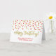 Negocio de todos nosotros tarjeta de cumpleaños con un patrón de confetti rojo y oro divertido. Perfecto para los empleados. Personalizable, también disponible en otras tarjetas.