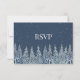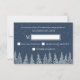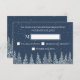 Winter wedding RSVP cards with a rustic night snow covered forest in navy blue and white. Customizable with your wedding details, available in many matching wedding products.