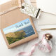 Este diseño moderno es una foto de los Atracciones de Moher en el extremo suroeste de la región de Burren en el condado de Clare, República de Irlanda. Se pueden ver las capas rocosas y las rocas sobre el océano azul oscuro, algunas olas espumosas y el mar que se extiende hasta el horizonte, con las islas Aran muy poco visibles a lo lejos. Los acantilados tienen césped verde, el cielo azul claro y gris, y las nubes blancas y grises. ¡Una bella y apacible escena! La frase dice "¡Gracias!", pero es editable como usted necesita. ¡Un pegatina encantador para expresar gratitud y agradecimiento por su negocio o sobres personales!