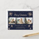 Fotografía azul Feliz Navidad y Feliz Año Nuevo con un collage de fotos con estrellas, copos de nieve y un hermoso saludo navideño con letras a mano en un estilo de letra festivo. Personaliza fácilmente esta postal azul de vacaciones con tus fotos, nombre de familia y texto. El fondo se puede personalizar a cualquier color.