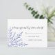 Personalizar la cédula de respuesta RSVP de la Boda Blanca de Invierno con tu fecha específica de respuesta matrimonial y empareja las invitaciones matrimoniales correspondientes para tus nupcias temáticas de diciembre, enero o febrero. Esta elegante tarjeta personalizado wintery r.s.v.p. presenta un diseño intrincado de copo de nieve con un tono azul añadido y un fondo blanco.