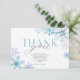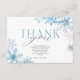 Envía gratitud con esta tarjeta de agradecimiento decorada con copos de nieve azul acuarela. Perfecto para notas de vacaciones, fiestas de invierno y mensajes de apreciación de Navidades.