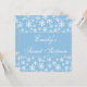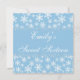 Un invierno moderno maravilla dulce invitación 16. Con copos de nieve blancos sobre fondo azul, acentuados con ilustraciones de diamantes. Personalice fácilmente con los detalles de su fiesta.