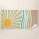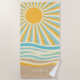 Esta toalla de playa presenta un diseño de olas al atardecer en tonos azules y marrones. Añade un nombre personalizado para convertirlo en un regalo especial personalizado para un amante de la playa.