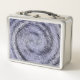 Un gráfico abstracto, con un patrón circular, geométrico, giratorio, en un jacuzzi de diferentes tonalidades de azul y morado.
