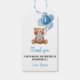 Blue Teddy Bear 1er cumpleaños etiqueta de agradec