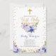 Invitación a la comunión del niño primero, con confeti dorado y floral azul hermoso.