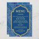 The layered blue tones create a calming yet luxurious feel, making this menu card perfect for destination weddings, boho celebrations, and upscale outdoor or resort venues. Designed with balance and readability in mind, the ornamental pattern frames the menu beautifully without overpowering the text. This easy to edit wedding menu template allows you to personalize names, dates, and menu items effortlessly, making it ideal for couples seeking both style and convenience.