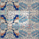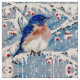 Un Bluebird se sienta feliz en a entre bayas del acebo del st durante una nevada. La imagen de la tela fue creada de una pintura original por el lago internacional Jennifer del artista.