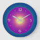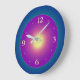 Reloj atento con fondo de azulina y centro de limón morado. Los números limoneros completan este diseño. Disponible en forma redonda y cuadrada. También manos de plata y negro.