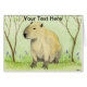 Un pequeño cuadro de un capibara sentado entre flores azules en primavera. Personalizar cambiando el texto para que se adapte a ti mismo!