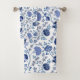 Diseño de patrones de superficie floral de estilo jacobeo en tonos azules contrastantes sobre un fondo blanco.