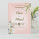 A romantic and elegant wedding invitation design featuring soft blush pink tones, delicate white floral elements, and a luxurious gold frame. Perfect for modern weddings, spring and summer ceremonies, or classic romantic themes. This template highlights the couple’s names in beautiful calligraphy, creating a timeless and stylish look for your special day.