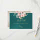 The Blush Floral & Wreath RSVP - Teal features the bride & grooms first initials and a blush pink floral bouquet on a teal background. The back has details for the recipient to fill out. Designed to coordinate with the "Floral & Foil Botanical Wreath" Wedding Collection. To change details, click «Personalize». To move the text or change the text size, font, or color click «Click to customize further» initials