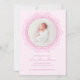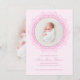 Share your baby girl’s arrival with this blush pink birth announcement featuring a delicate floral frame and elegant script typography. The circular photo layout beautifully highlights your newborn’s portrait, creating a soft and timeless design.