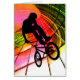 La acción de los deportes y la energía de los atletas de BMX se capturan en siluetas de las figuras de acción que demuestran trucos y trucos extremos en sus bicis. Las pinturas de Digitaces y los ilustraciones de estas adolescencias y hombres jovenes incluyen los fondos de colores brillantes, vivos y salpican y estallan de luz para destacar la acción. También muestran apagado en las escenas sucias y nerviosas de la calle donde los niños ganan sus creds de la calle que muestran apagado sus habilidades de la bicicleta.