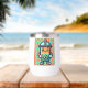 Burbuja de Kawaii verde azulada de texto retro fresco con una vibra de época en verde naranja y menta. Tumbler personalizado.