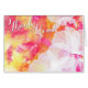 Magenta de fuego brillante, trazos de color rosa, amarillo y dorado que indican el verano brillante atardecer tropical, acentuado con un revestimiento de Hollyhock floral blanco.