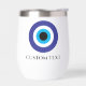 Tumbler de vino termal del boda griego Evil Blue Mati. Famoso símbolo griego/turco Blue Mati para la protección y la buena suerte. Personalizar con texto personalizado. Ideal para el cumpleaños, la fiesta de bodas y otros eventos. Crea tus propias tazas y gafas de bebida.