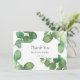 Tarjeta de agradecimiento con hojas de eucalipto con delicadas hojas de eucalipto pintadas a la acuarela enmarcando su mensaje de agradecimiento en un elegante texto gris pizarra, solo agregue el nombre de su familia y la fecha. Puede personalizar con su propio mensaje de agradecimiento en el reverso, una forma perfecta de decir gracias! Diseñado por Thisisnotme