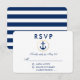 Tarjeta RSVP de oro de anclaje azul Boda náutico - Retirada hacia atrás - Texto azul