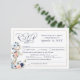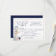 Tarjeta de respuesta de boda náutica, costera, de playa o crucero hermosa con ancla con flores de acuarela azul marino, melocotón, azul claro y blanco enmarcadas con un borde de oro champán y tipografía de letra caligráfica elegante. El diseño incluye su texto personalizado para incluir selecciones de menú u otros detalles o información. ASISTENCIA: Para ayuda con la modificación del diseño o personalización, cambio de color, transferencia del diseño a otro producto o si desea elementos coordinados, contacte al diseñador ANTES DE REALIZAR EL PEDIDO a través de la pestaña de MENSAJE de chat de Zazzle o envíe un correo electrónico a makeitaboutyoustore@gmail.com.