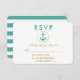 Tarjeta RSVP de oro para ancla Verde azulada de Boda náutico - con bandas hacia atrás