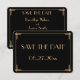 Tarjetas redondas de guardar la fecha de boda doradas y negras del Gran Gatsby Art Déco (5 pulgadas por 3,5 pulgadas) con texto modificable