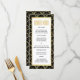 Boda Art Deco Menú de cena delgado negro, blanco y dorado