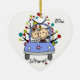 Un adorno de conservas de cerámica en forma de corazón de bonito tiene una figura de palo marido y mujer en un coche boda teniendo su primera Navidad juntos como pareja casada! Cambia fácilmente la fecha al año actual en esta pareja adorable con adorno de diseño de árbol de Navidad. ¡Hace una gran idea de regalo!