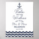 Boda azul marino náutico Deja una nota impresión de signo