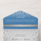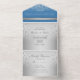 Elegante y adorable invitación a la boda todo en uno con azul hielo y plata purpurina con caligrafía moderna, brillantes copos de nieve y una foto personalizado de la pareja en la parte de atrás. ¡La elección perfecta para las bodas de invierno contemporáneas! Añade tu foto, detalles del boda y rsvp.