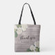Boda Favor Bienvenida y Gracias Plantillas de Bolsas de Regalo - Elegante color de agua blanco adorable Hidrangea Flores y String Lights sobre fondo de madera rústica. ¡Un Diseño Perfecto Para Tu Gran Día! Todos Los Estilo De Texto, Los Colores Y Los Tamaños Se Pueden Modificar Para Ajustarse A Sus Necesidades.